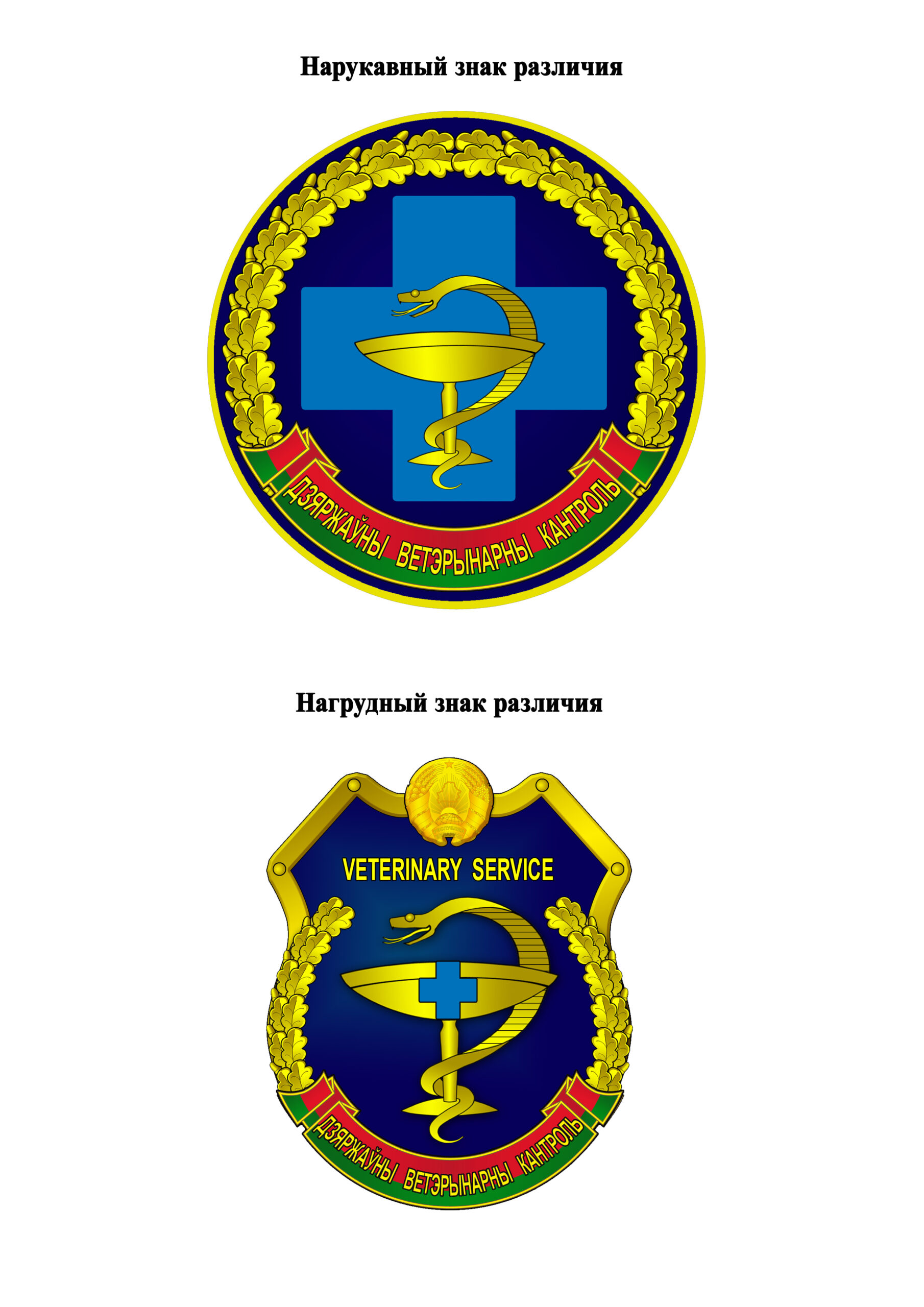 Форменная одежда и знаки различия для государственных ветеринарных инспекторов государственного учреждения «Белорусское управление государственного ветеринарного надзора на государственной границе и транспорте» 28 октября 2021 г. учреждены Президентом Республики Беларусь Александром Григорьевичем Лукашенко указом № 423
